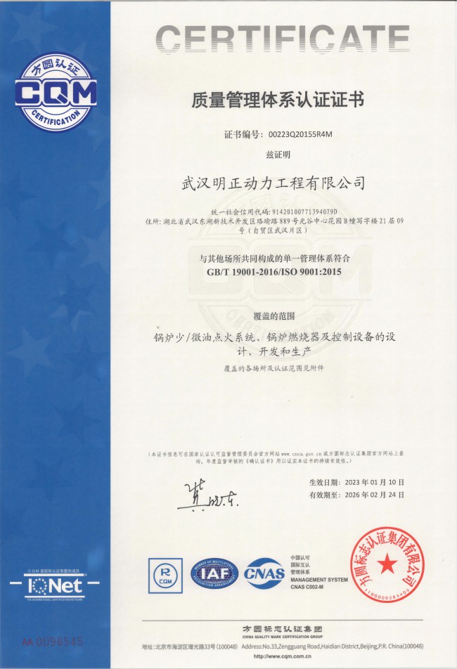 质量管理系统认证证书