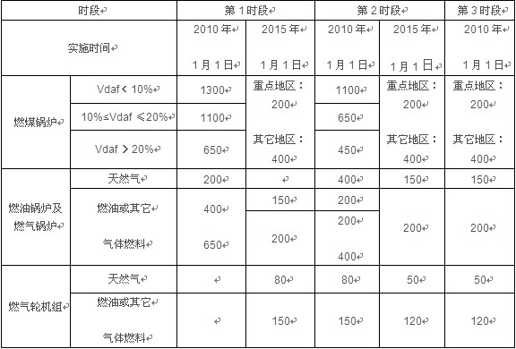 火力发电锅炉及燃气轮机组氮氧化物最高允许排放浓度(G13223-2010) 征求意见稿 单位:mg/Nm3