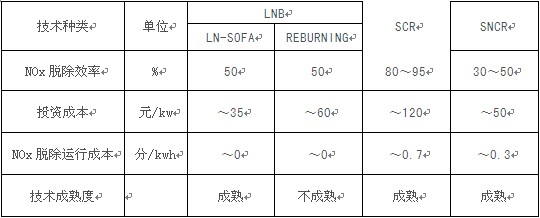 LNB、SCR和SNCR三种脱氮技术的经济技术比较