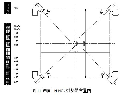 主燃烧器布置有六层二次风,两层CCOFA二次风,SOFA燃烧器设计有三层二次风,此三层二次风可同时垂直、水平摆动。