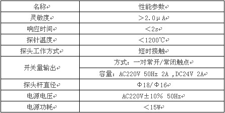该火焰检测装置是由火检探头(离子导电杆)、检测电缆和信号处理箱组成。其工作原理为:将探头探针深入火焰区,利用燃料高温气化产生的电离特性,导通电极,发出火焰信号。点火完毕,应将探针退出火焰区,以防止高温污染使电极失效。
